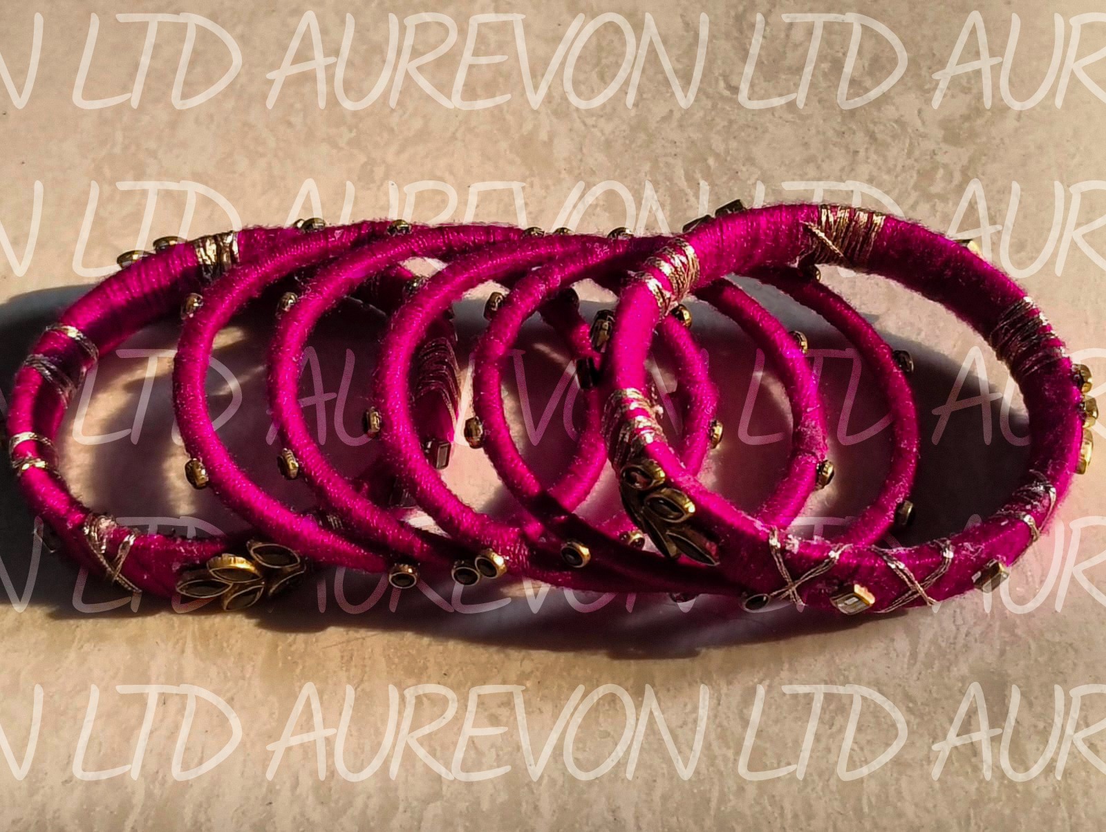 & Free Shipping- Silk thread bangles – wrapped in bright pink thread